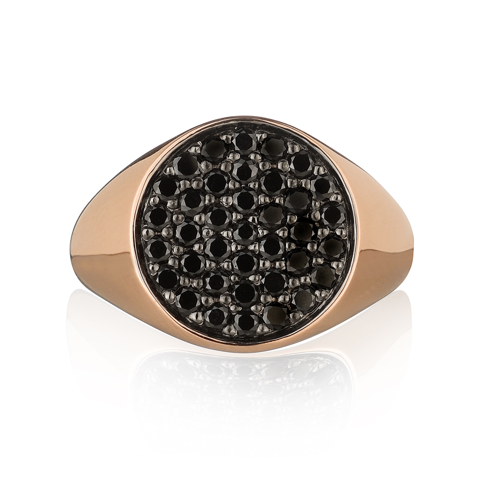 18kt gold chevalier ring with a black diamonds’ pavé.