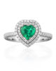 18kt white gold ring with a central heart cut emerald and a double brilliant cut diamonds’ pavé setting.