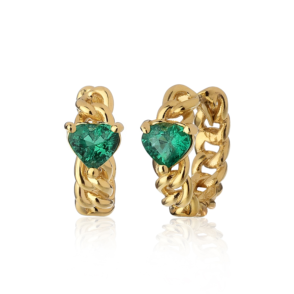18kt gold mini groumette earrings with heart cut emeralds (inner diameter: 10 mm).