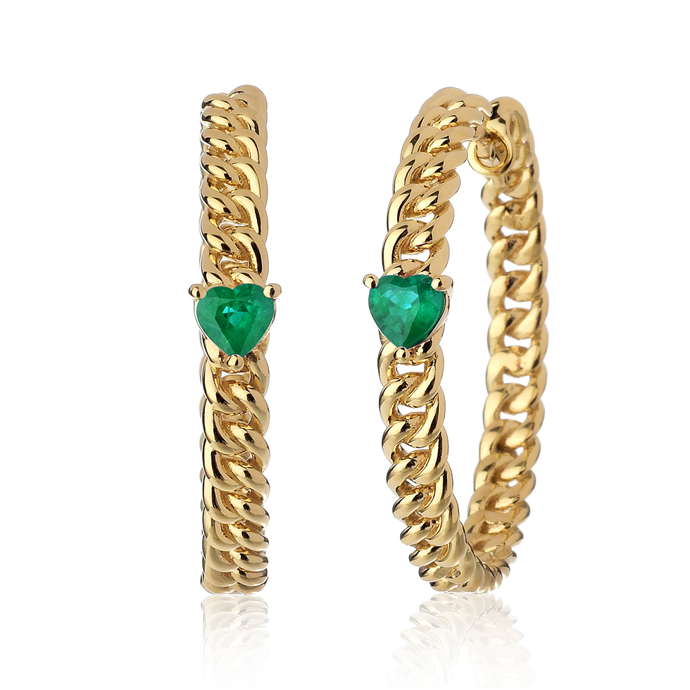 18kt gold mini groumette earrings with heart cut emeralds (inner diameter: 25 mm).