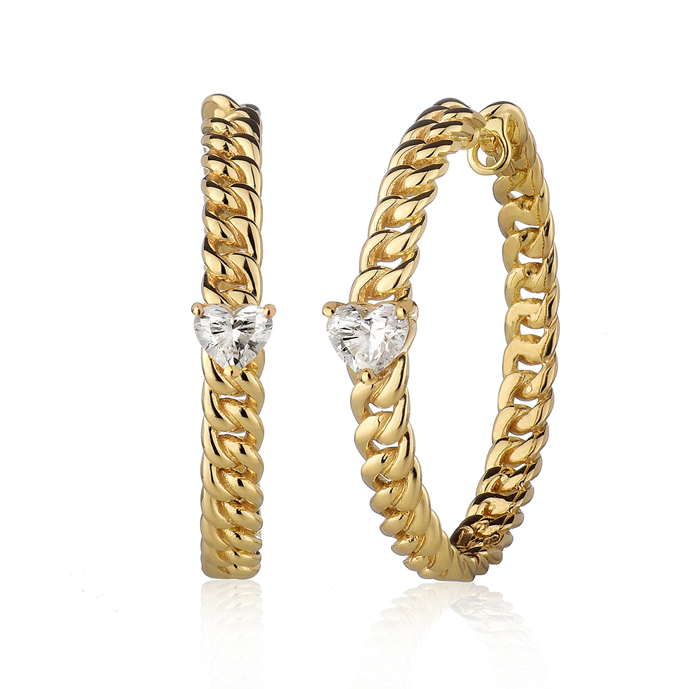 18kt gold mini groumette earrings with heart cut diamonds (inner diameter: 25 mm).