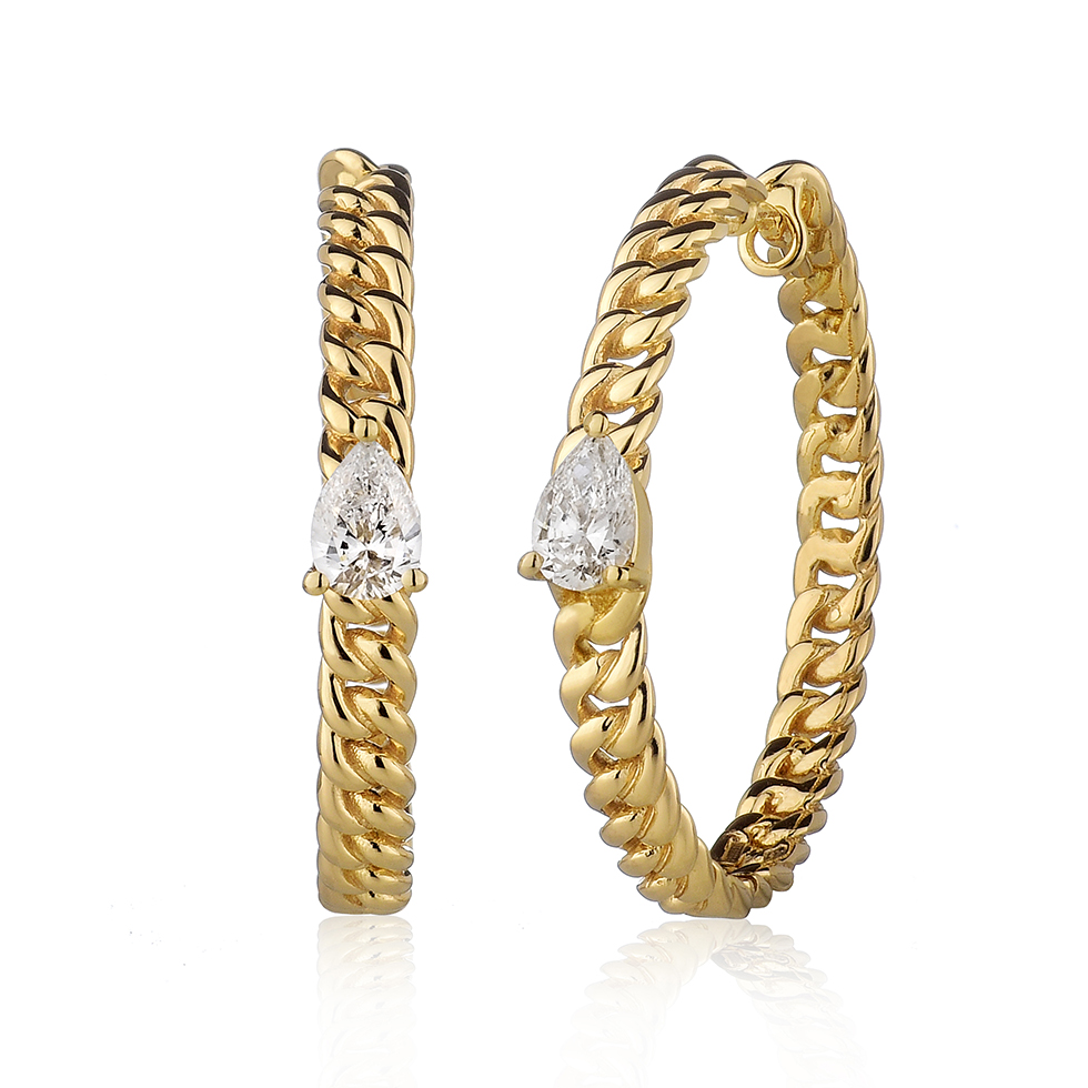 18kt gold mini groumette earrings with pear cut diamonds (inner diameter: 25 mm).