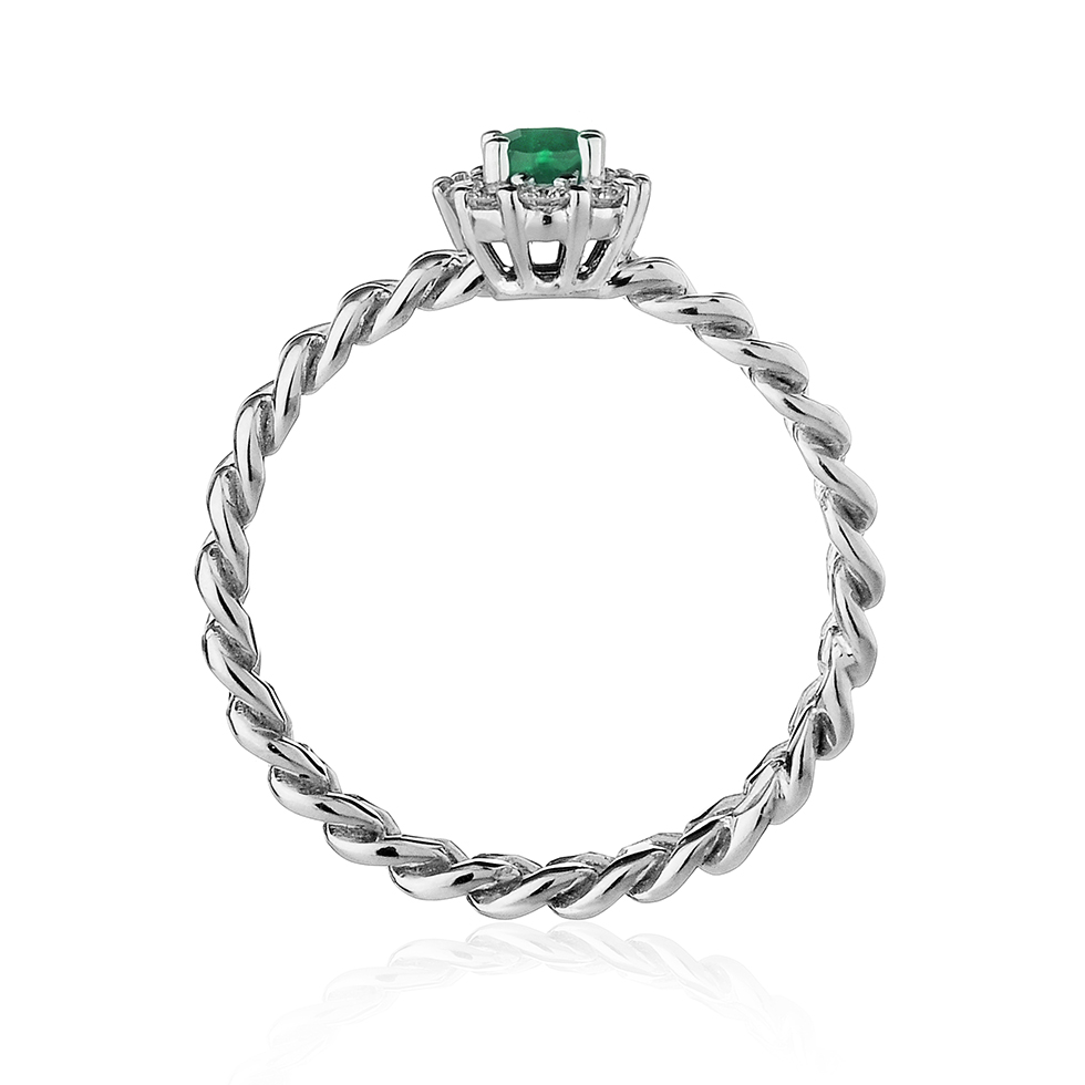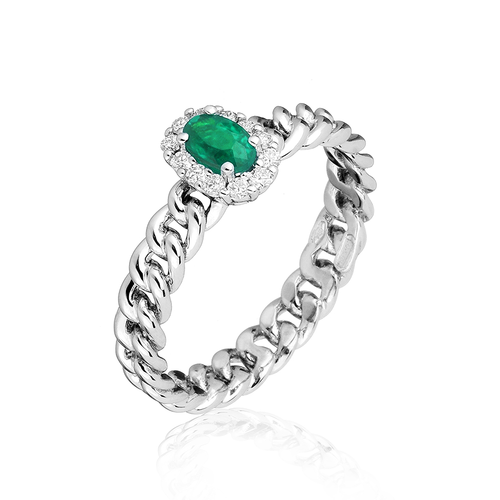 Mini version of the Royal ring: cluster groumette in 18kt white gold with a central emerald and diamonds’ surrounding.