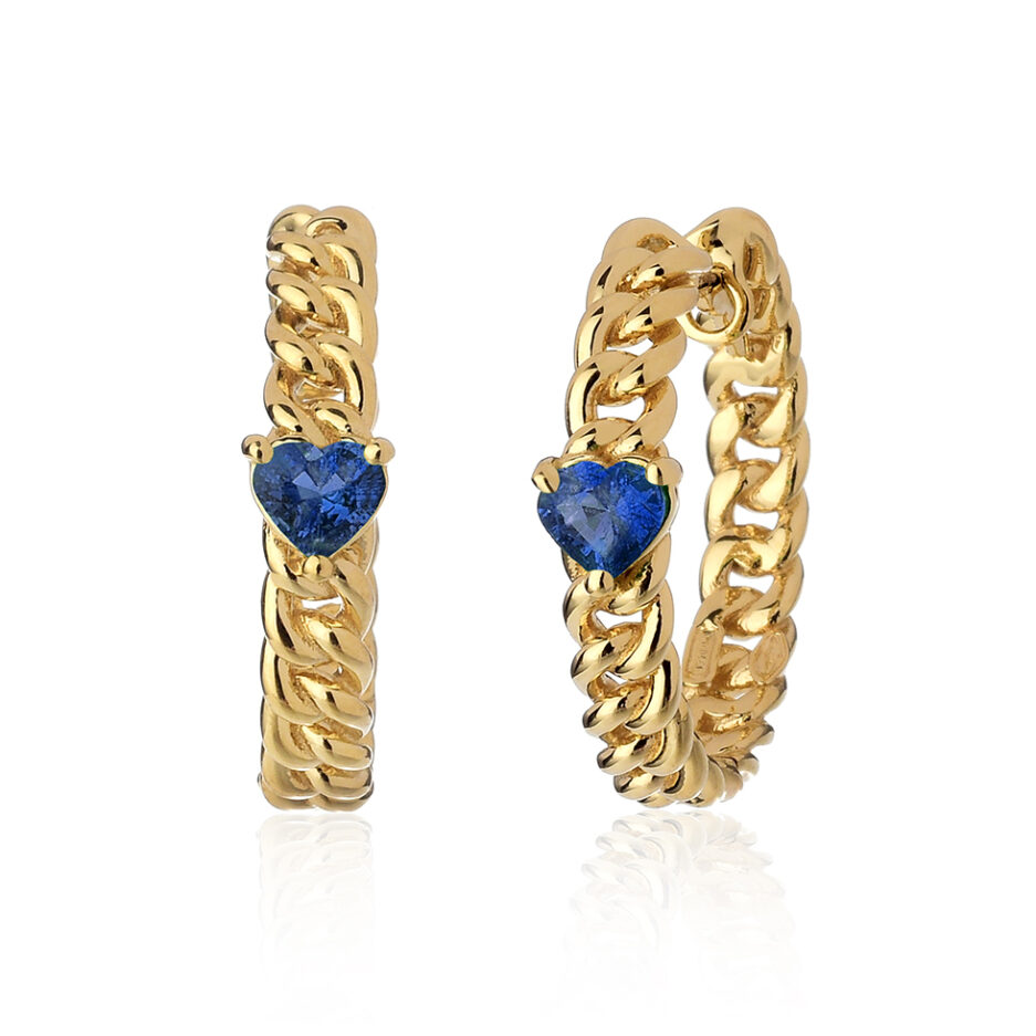 18kt gold mini groumette earrings with heart cut blue sapphires (inner diameter: 17 mm).