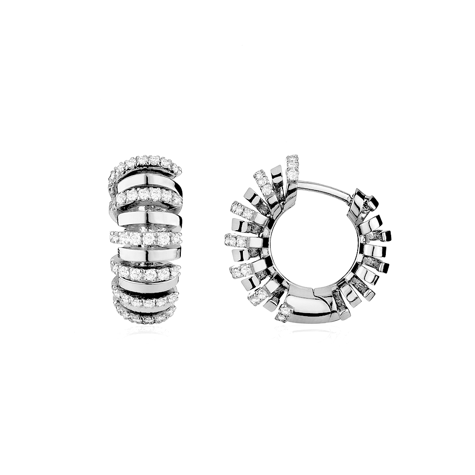 Orecchini a fascia in oro 18 carati con pavé di diamanti alternato (diametro interno: 8 mm).