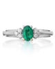 White gold 18kt ring with a central emerald and three brilliants per side that form a heart.